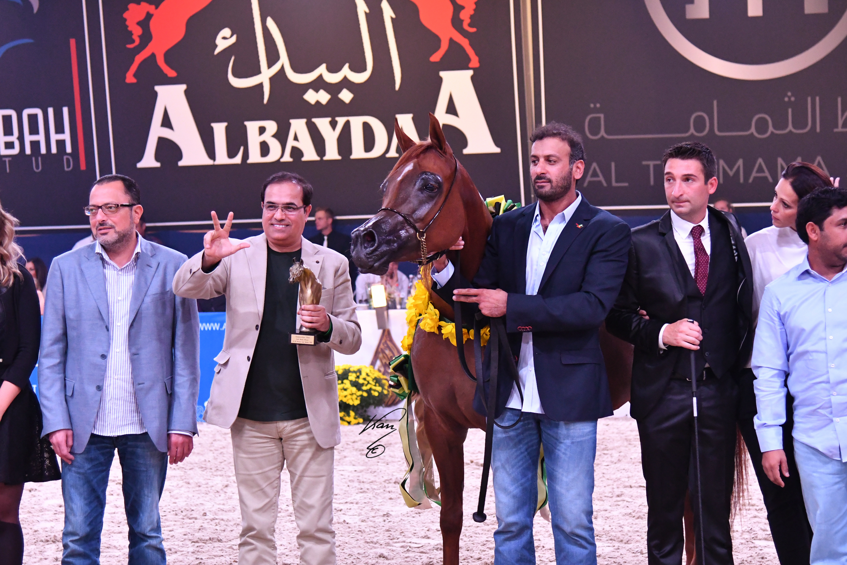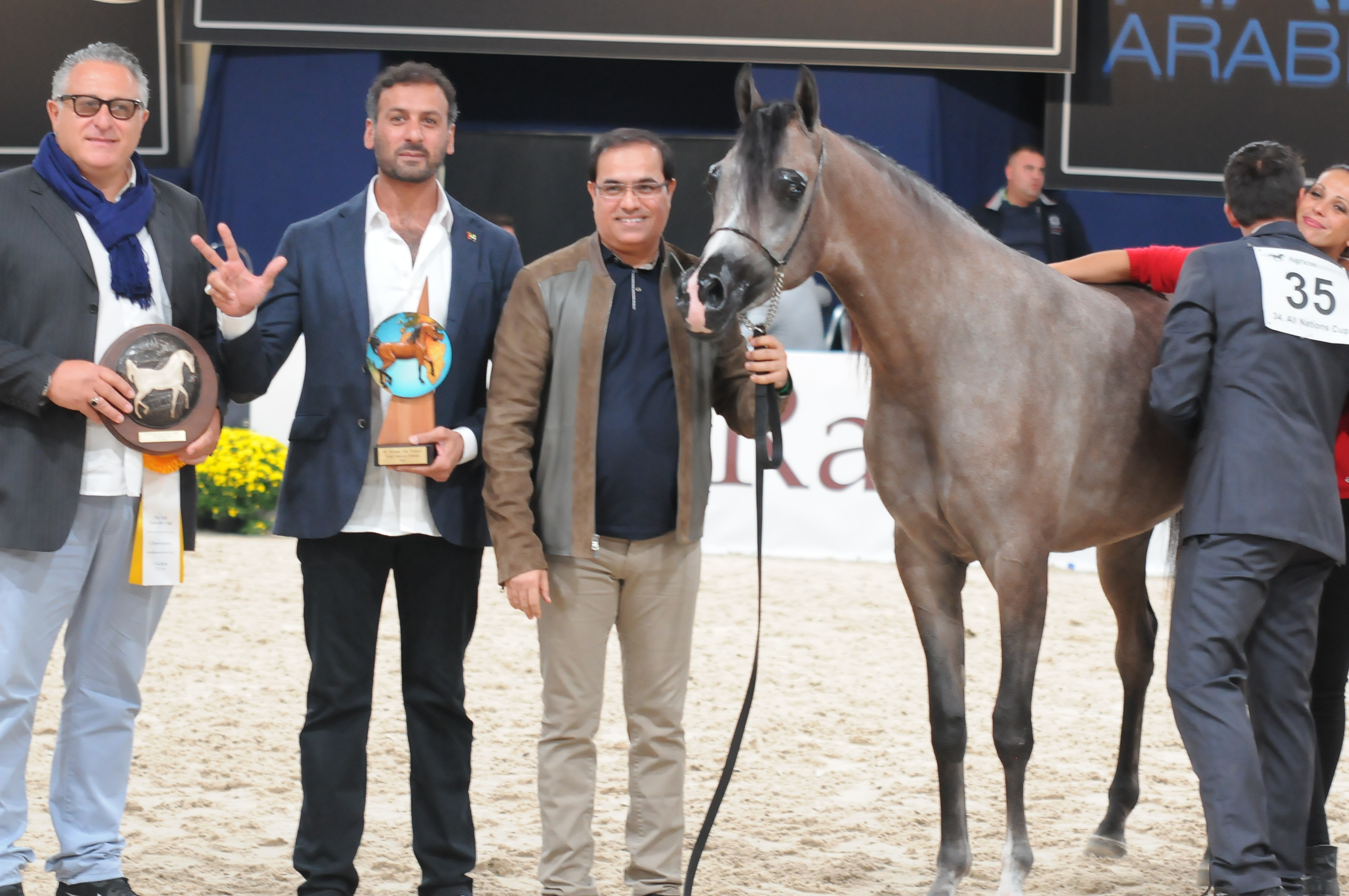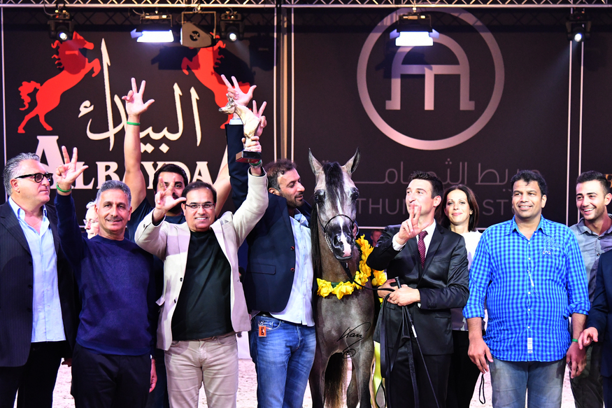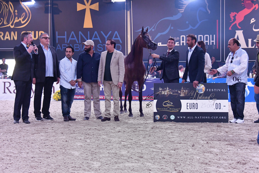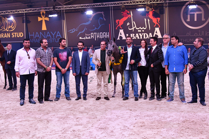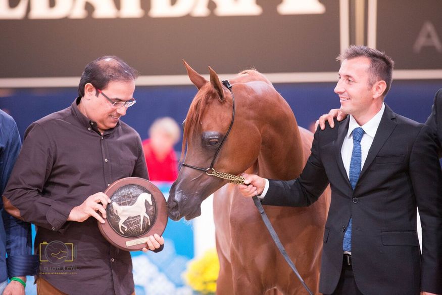 It is the first time in the history of the All Nations Cup Championship that one farm earns three gold titles at once. The Dubai Stud Horses proudly achieved three gold titles by D Ajayeb as Gold Champion Yearling Filly, D Seraj as Gold Champion Yearling Colt and finally Elle Flamenca as Gold Champion Junior Filly. The distinctive performance of Dubai stud Gold champions in All Nation Cup 2016 showed a very promising future crowned with gold for the breeding program of Dubai Stud.